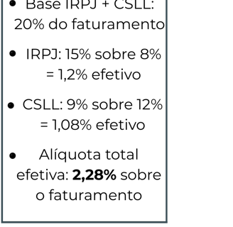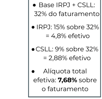 Alíquota efetiva média: 15,5% (sem Fator R)